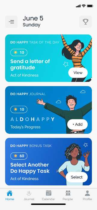 The Do Happy App is a happiness app built on a foundation of kindness.