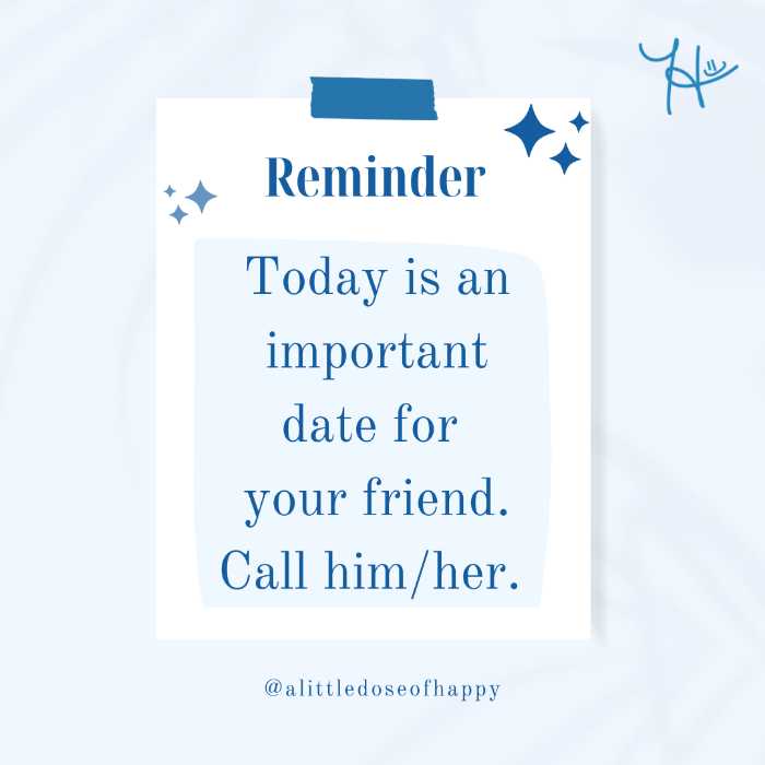 Remember your friends’ special occasions and let them know you are thinking about them on those days. It is incredibly heartwarming when someone remembers a special date that is important to you. Your friends remember these kind actions because you show them they matter and that you genuinely care.
