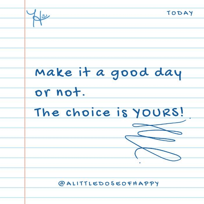 Our high school principal once said, “Make it a good day or not; the choice is yours!”