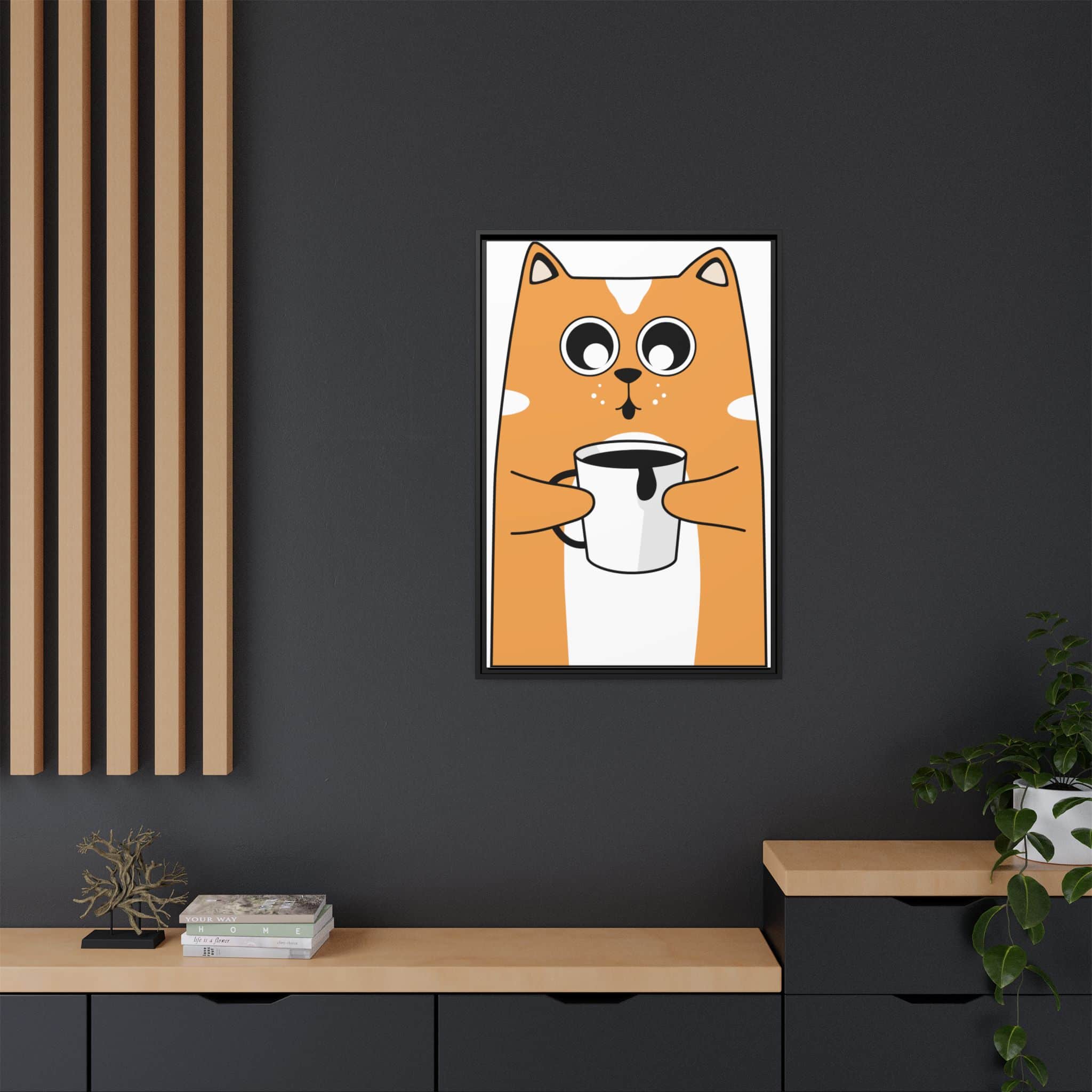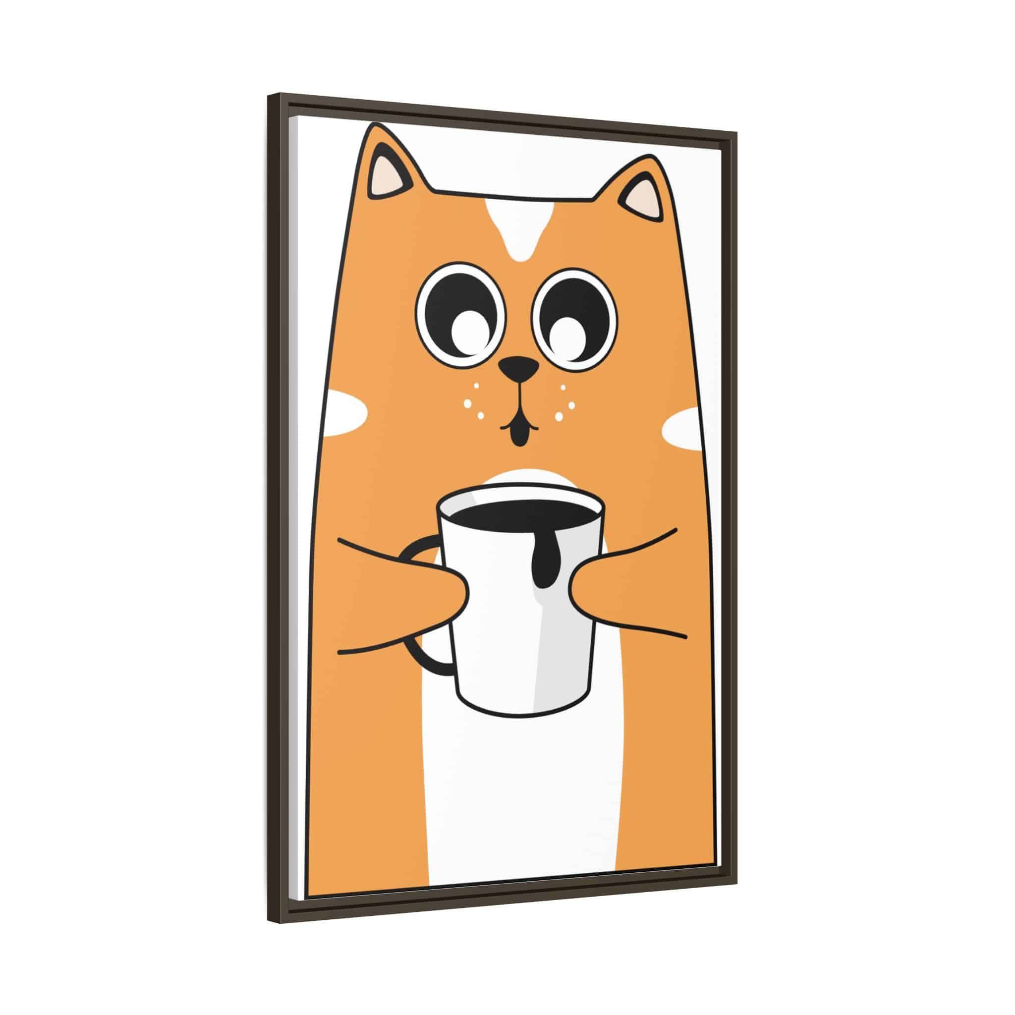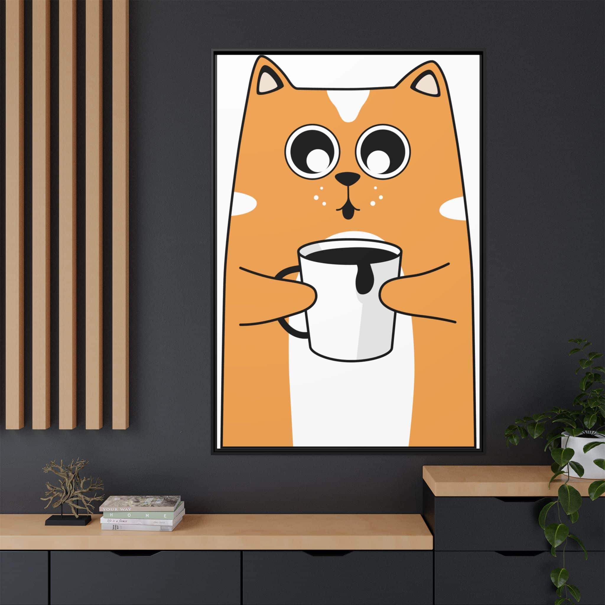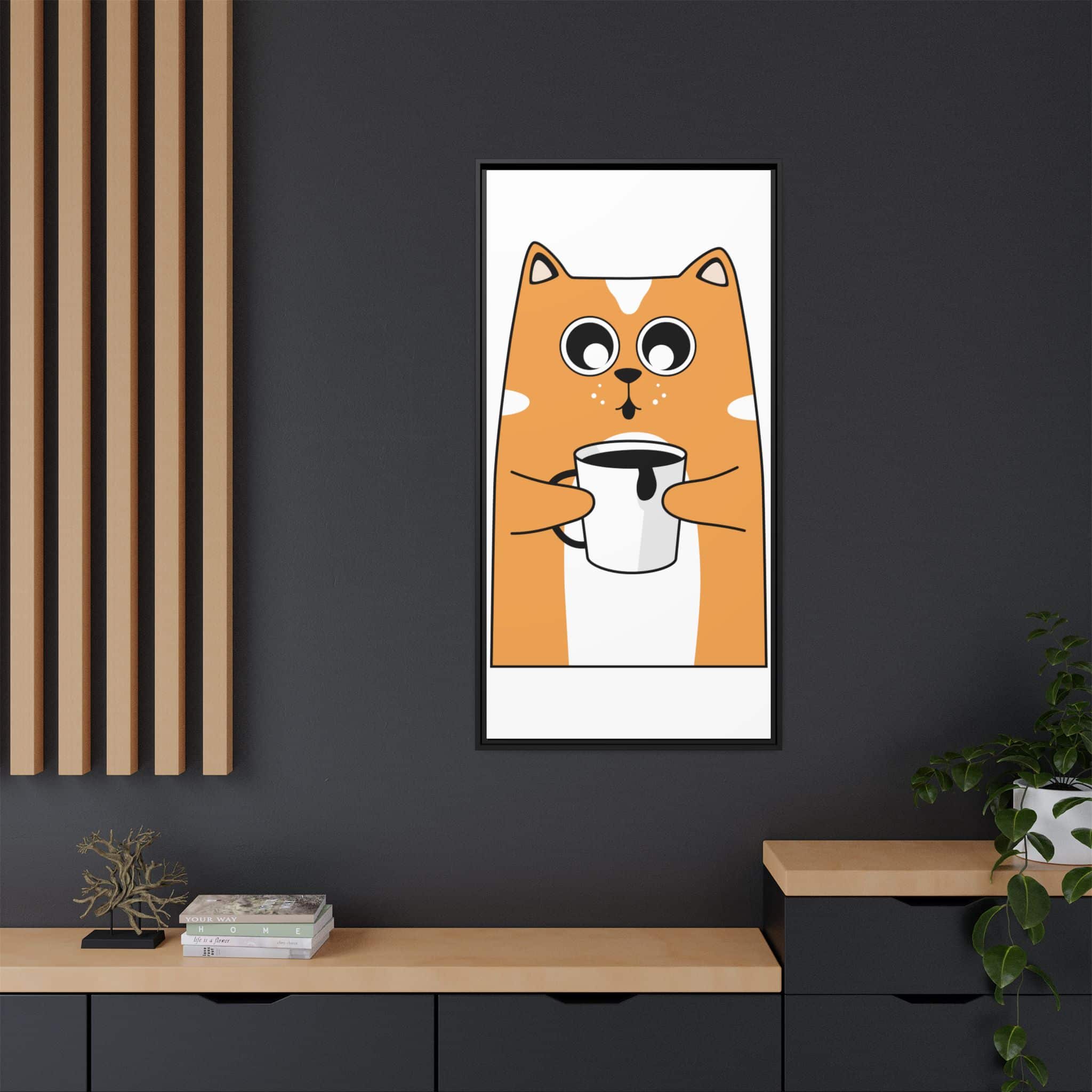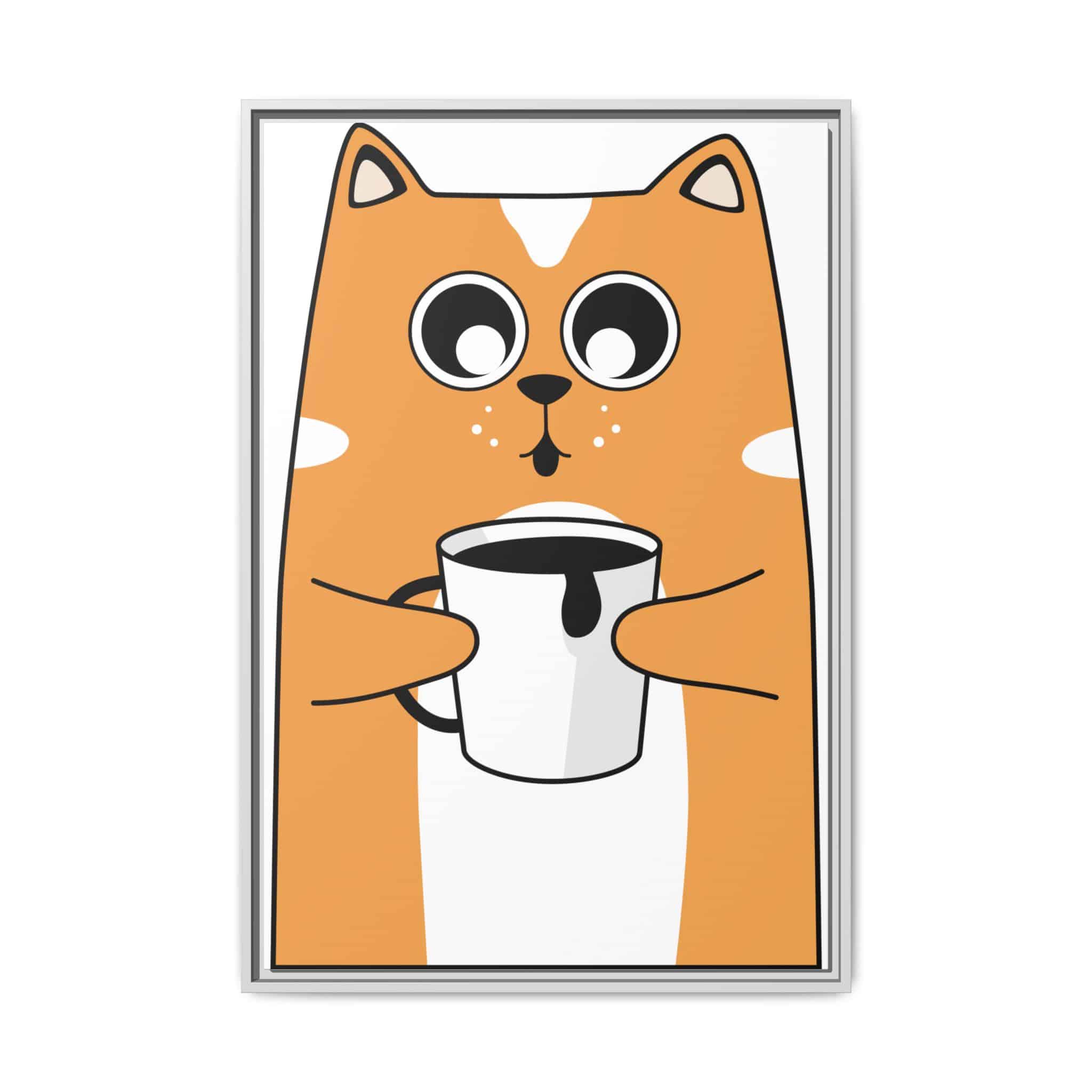 Cute Cat Framed Canvas Art – Whimsical Coffee Decor