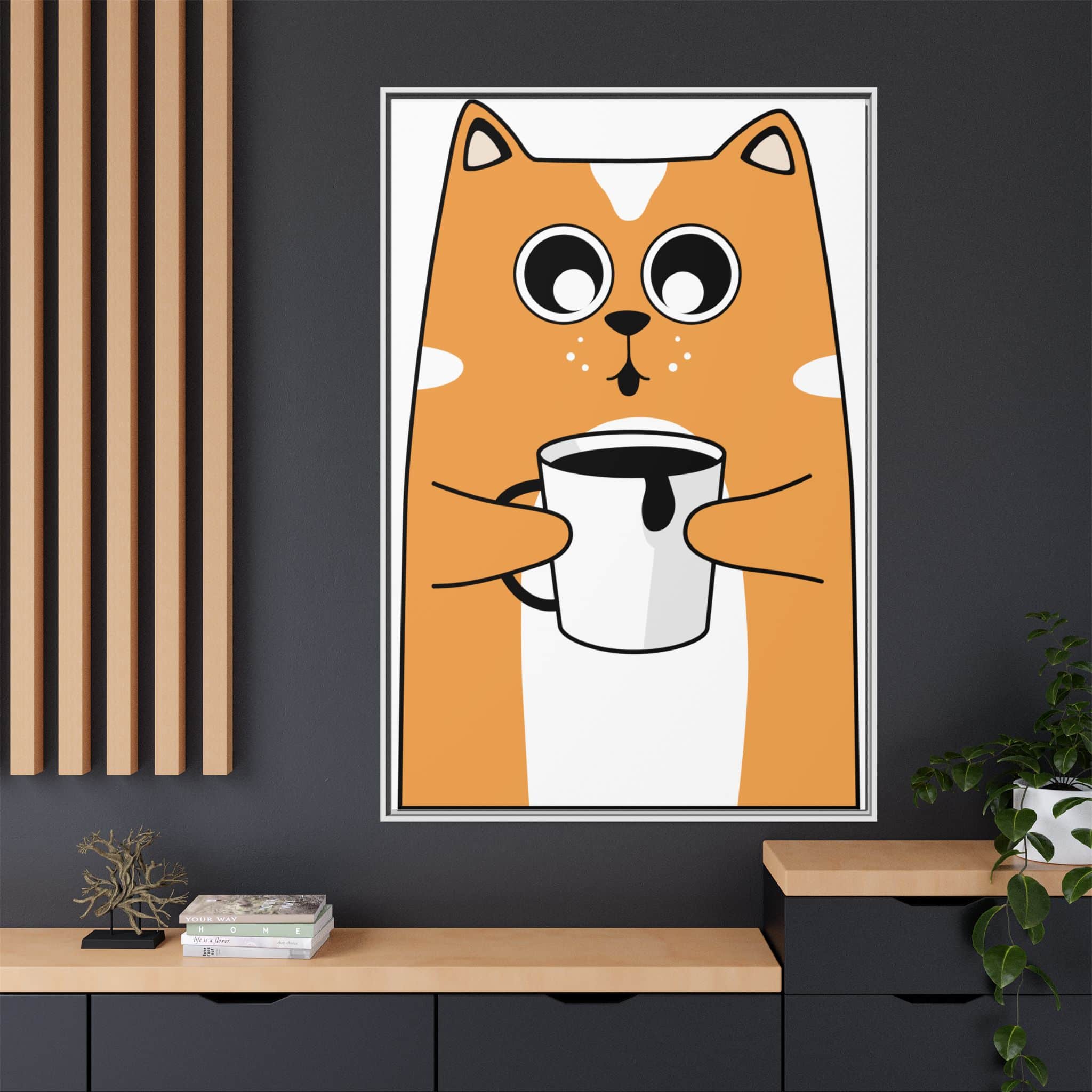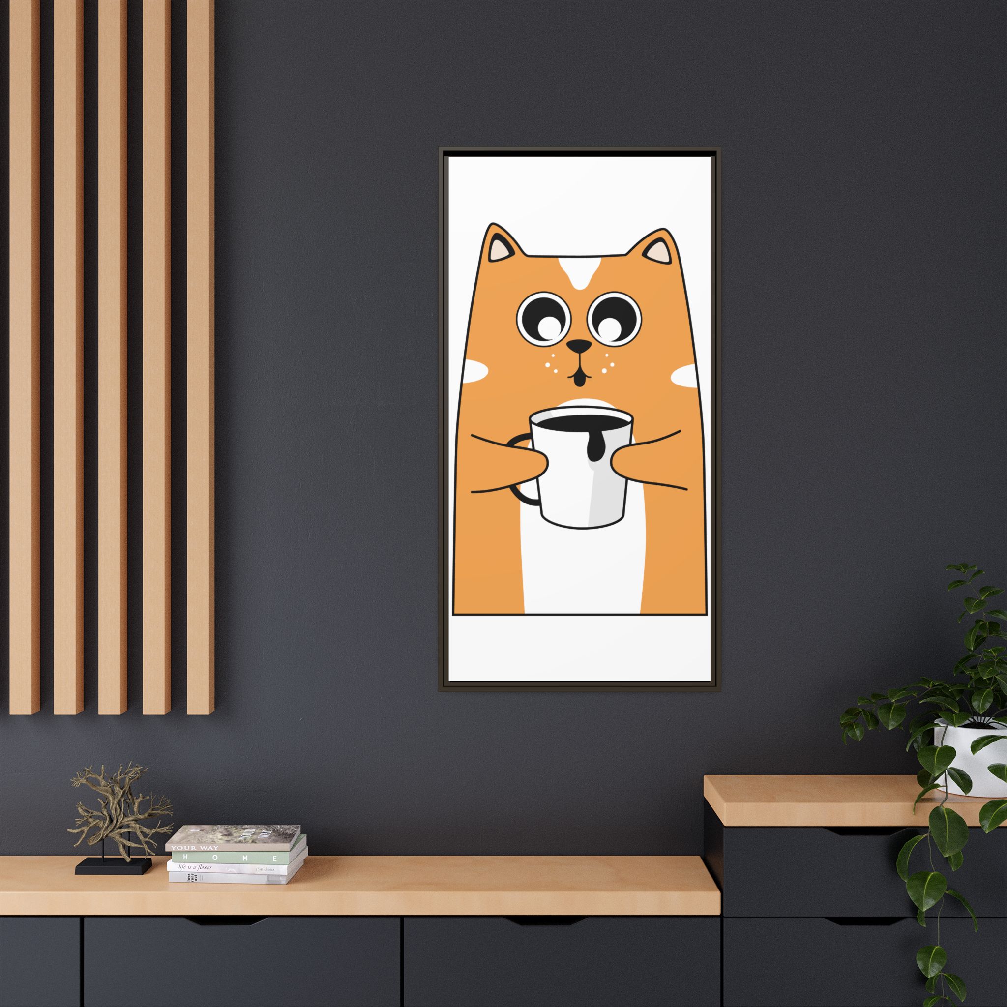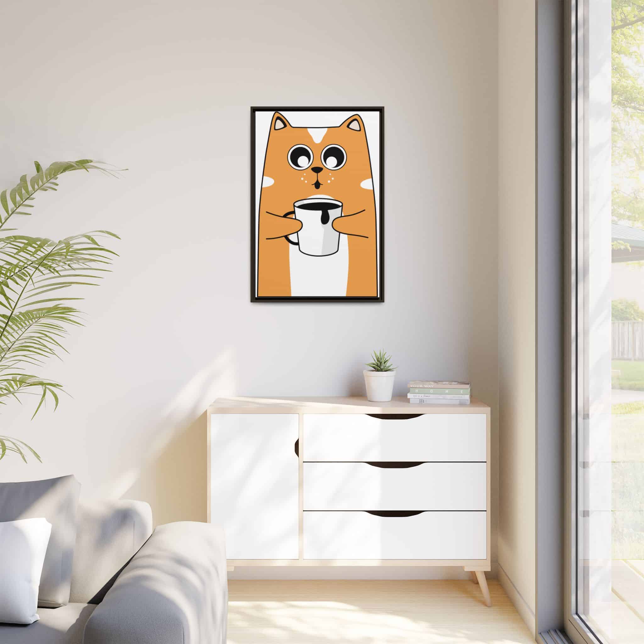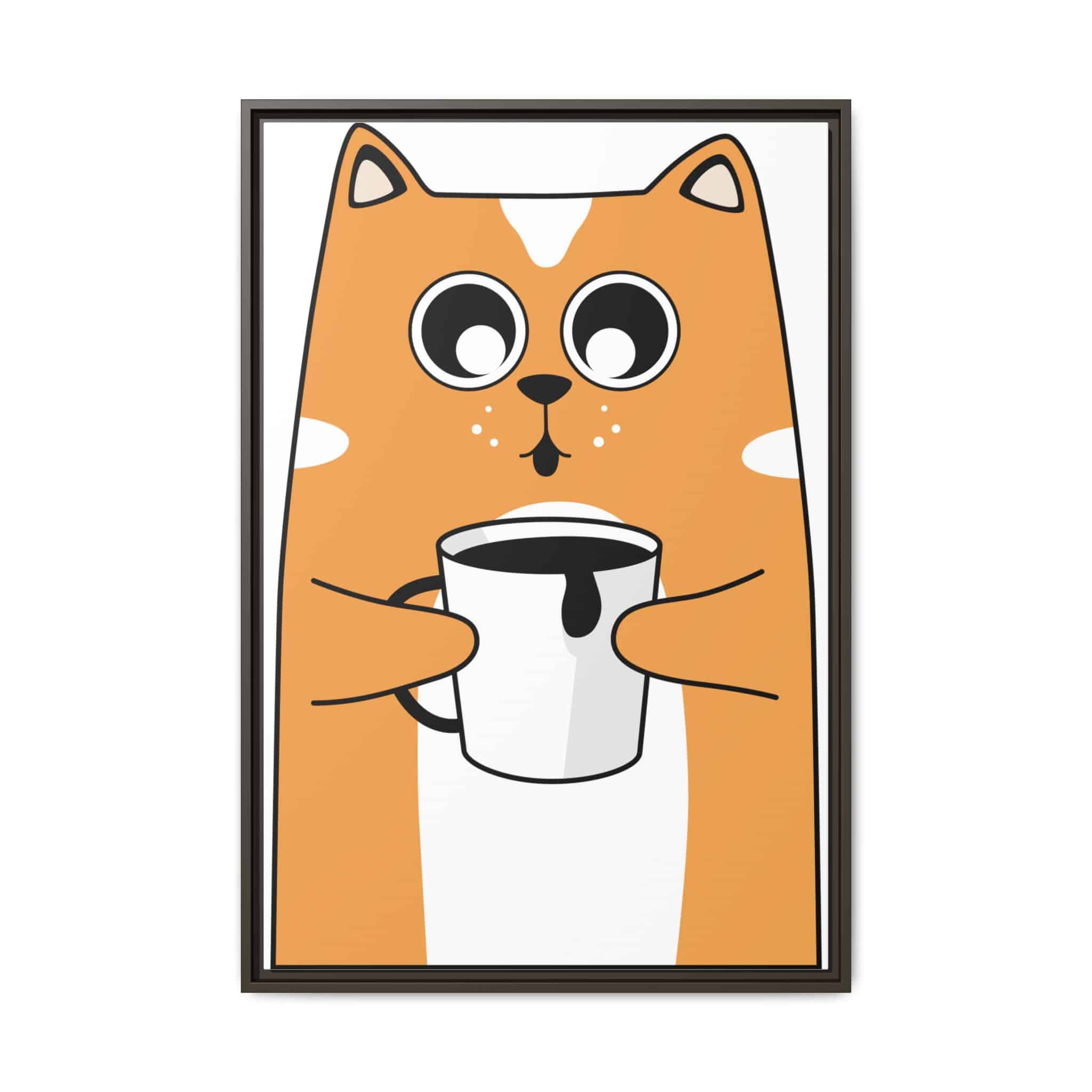 Cute Cat Framed Canvas Art – Whimsical Coffee Decor