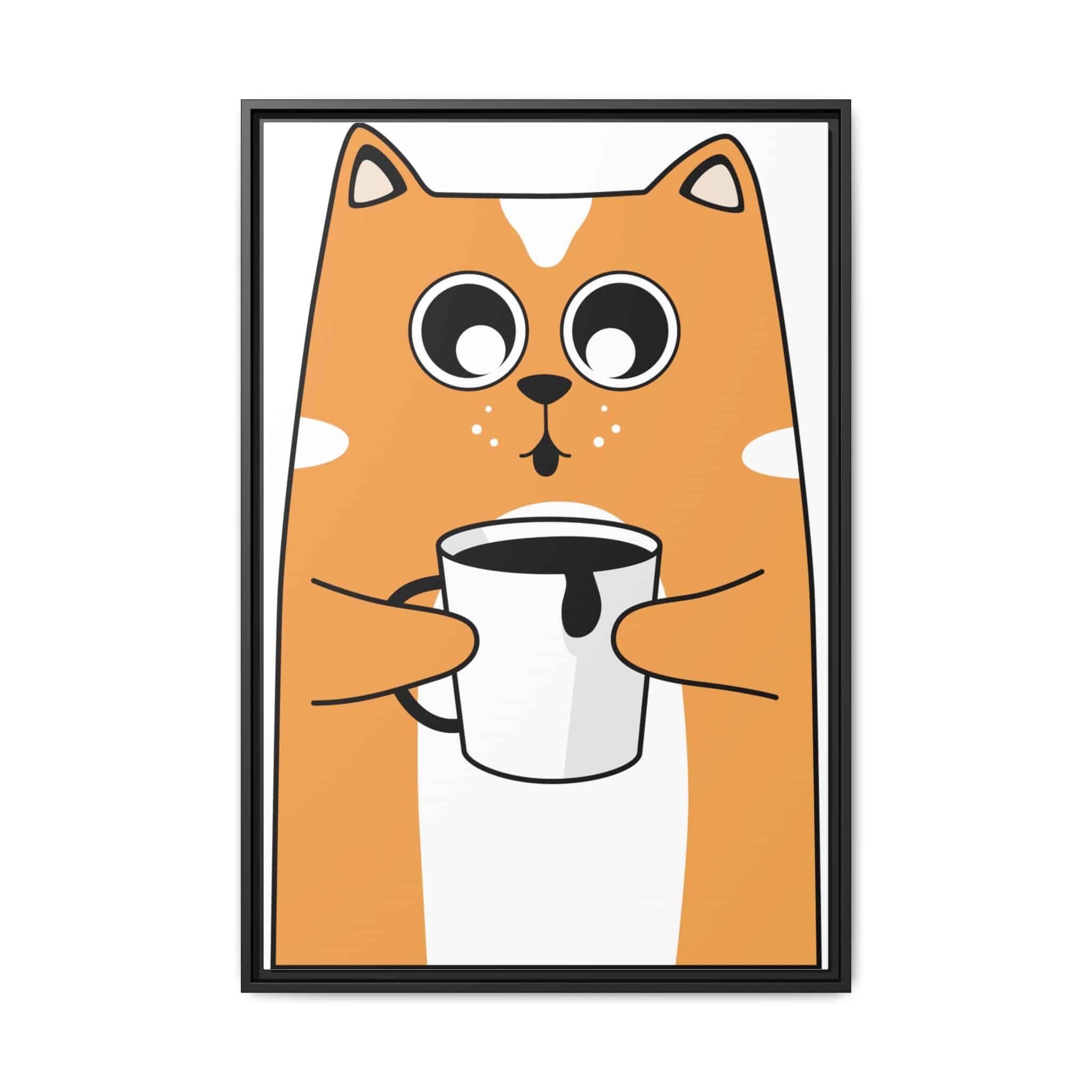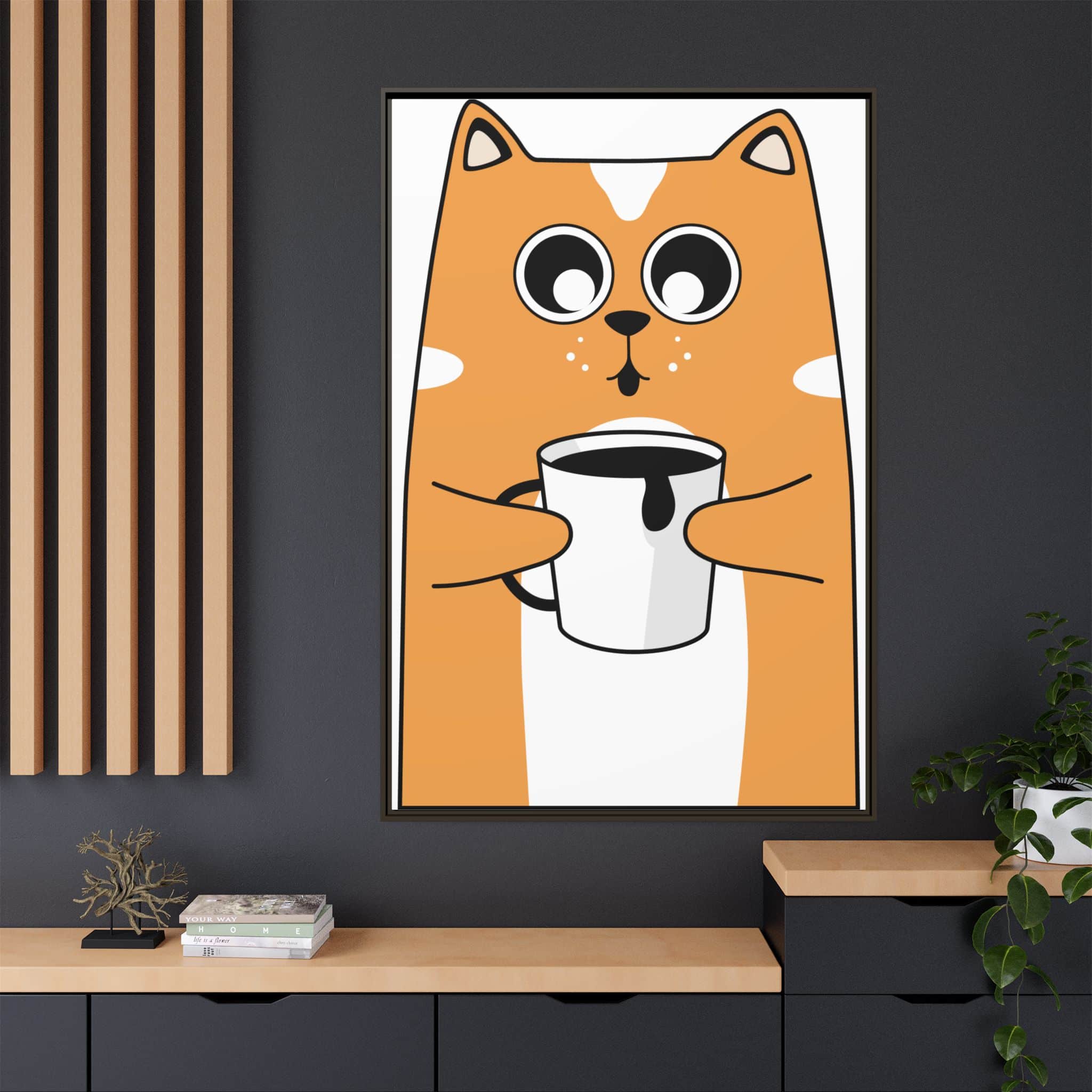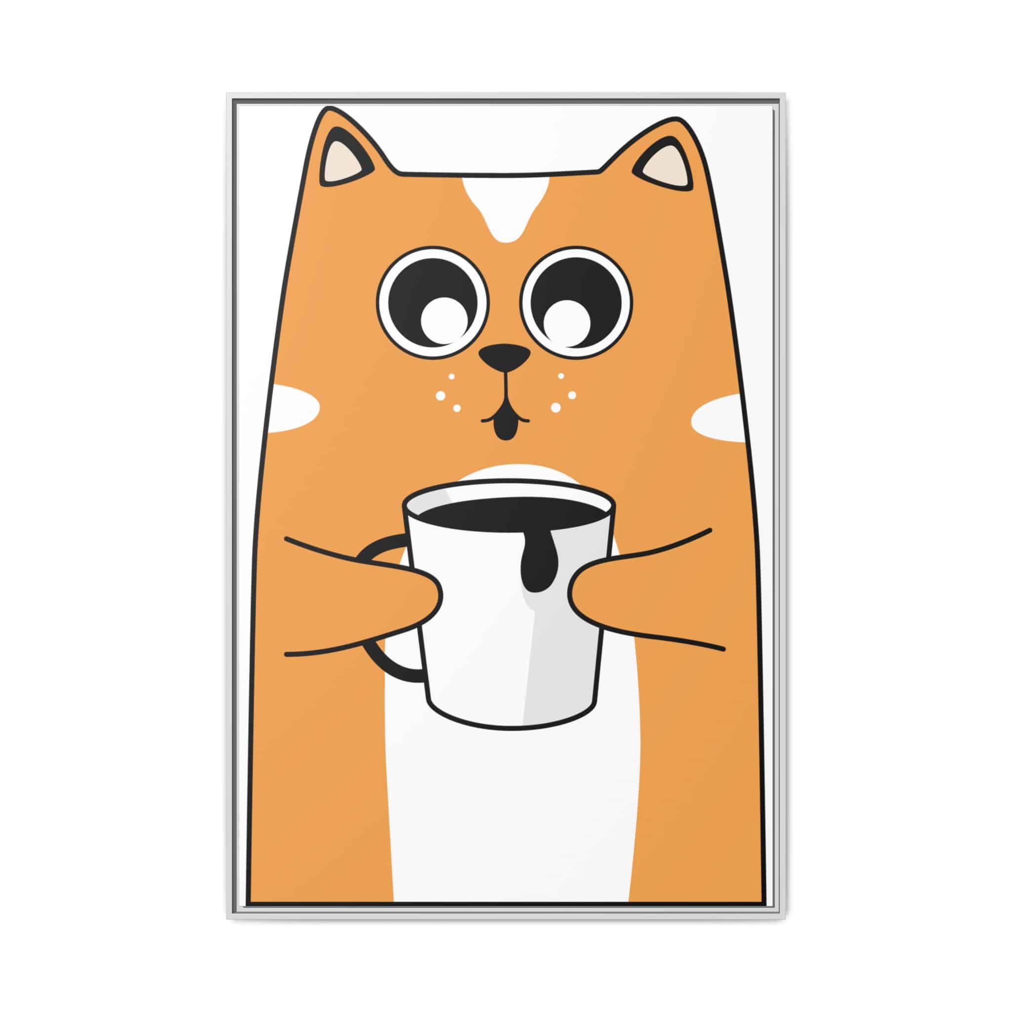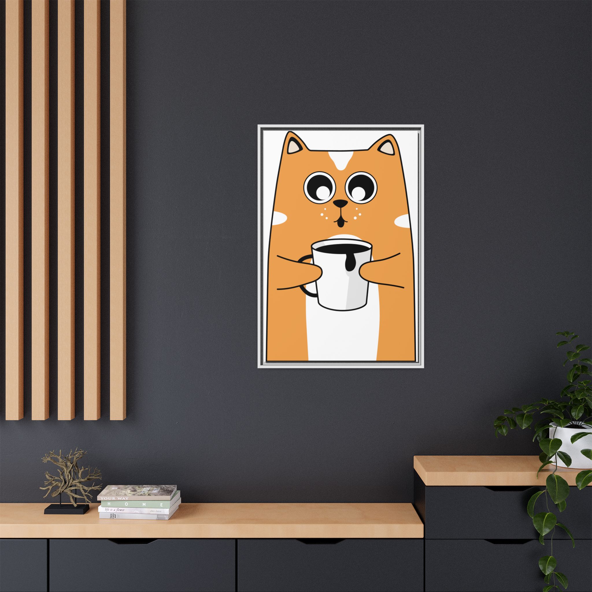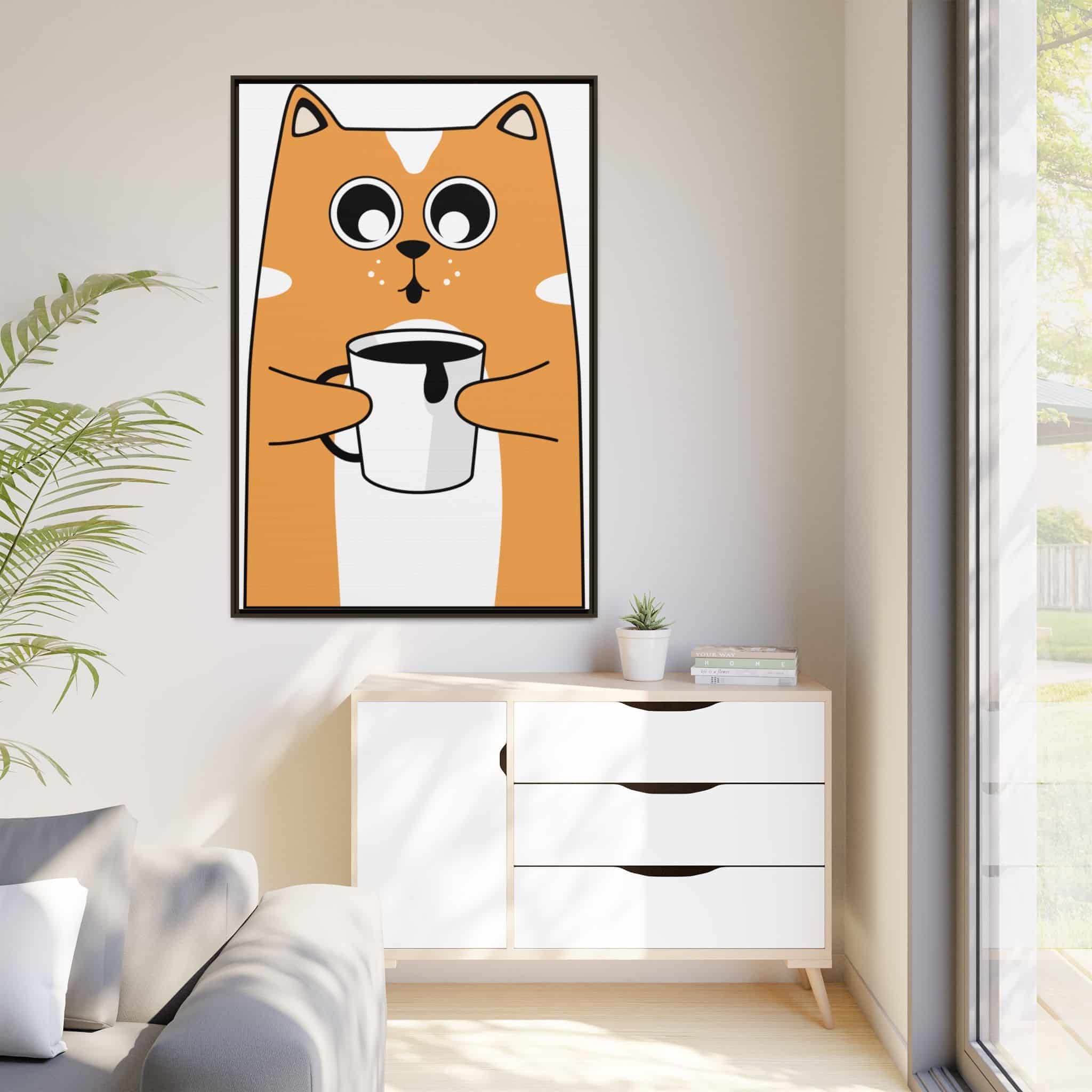 Cute Cat Framed Canvas Art – Whimsical Coffee Decor