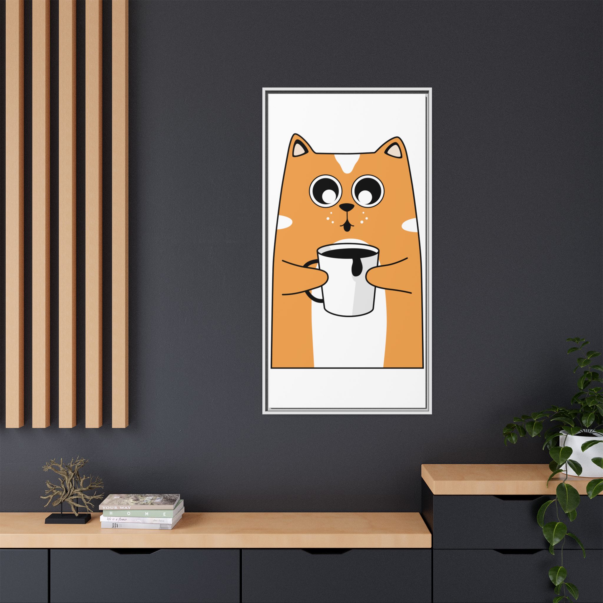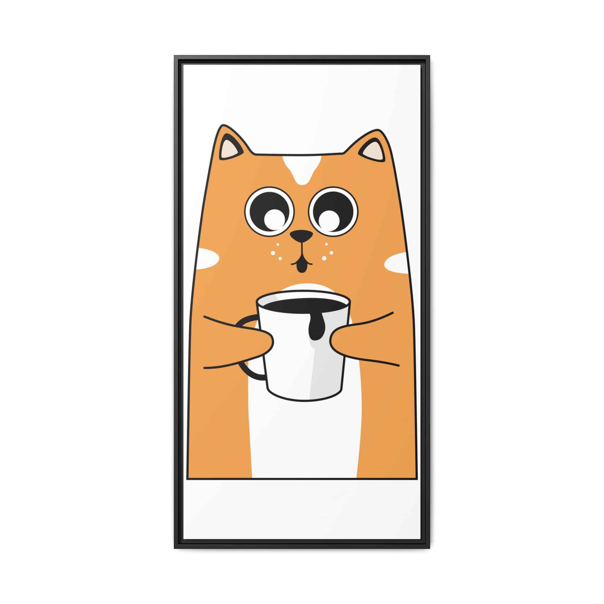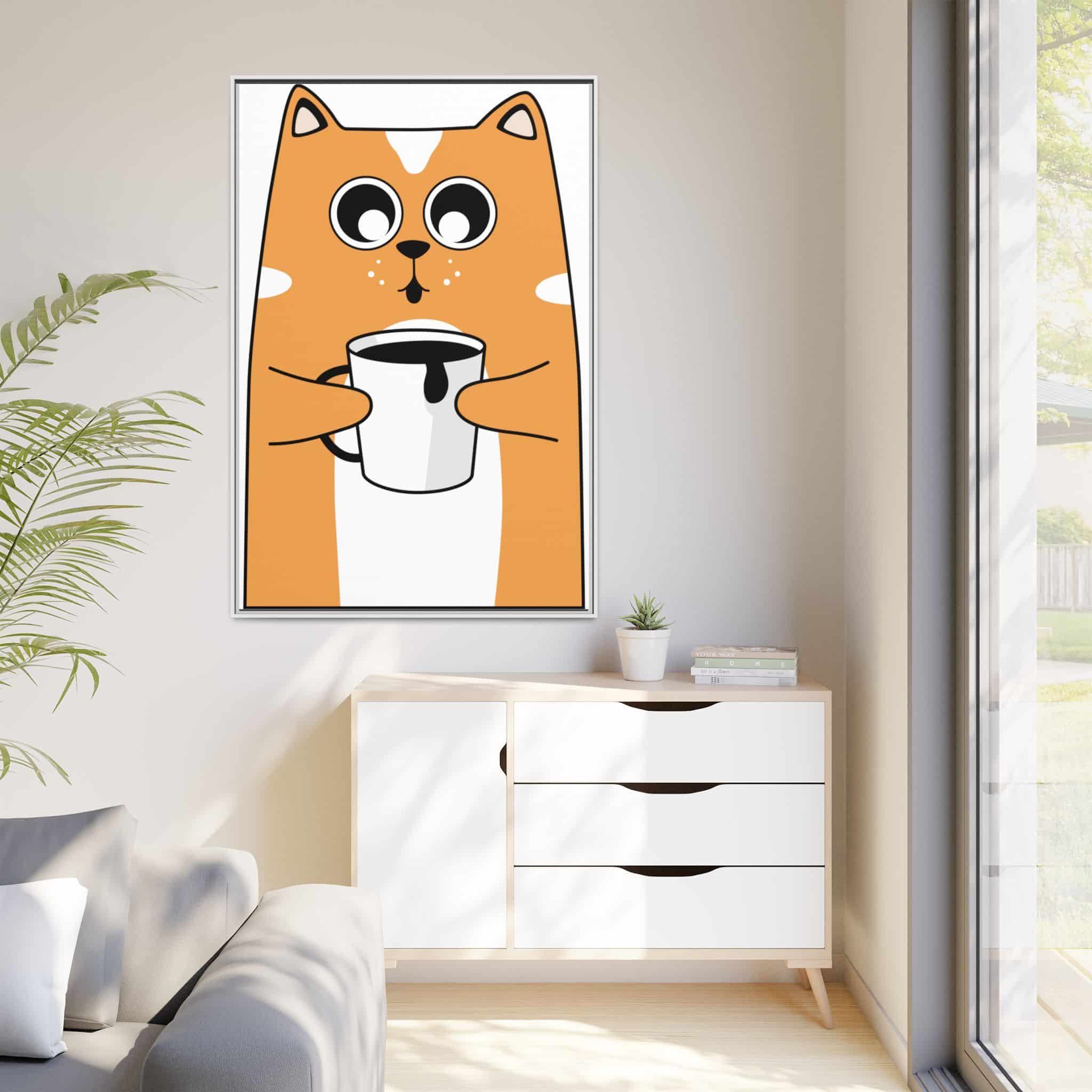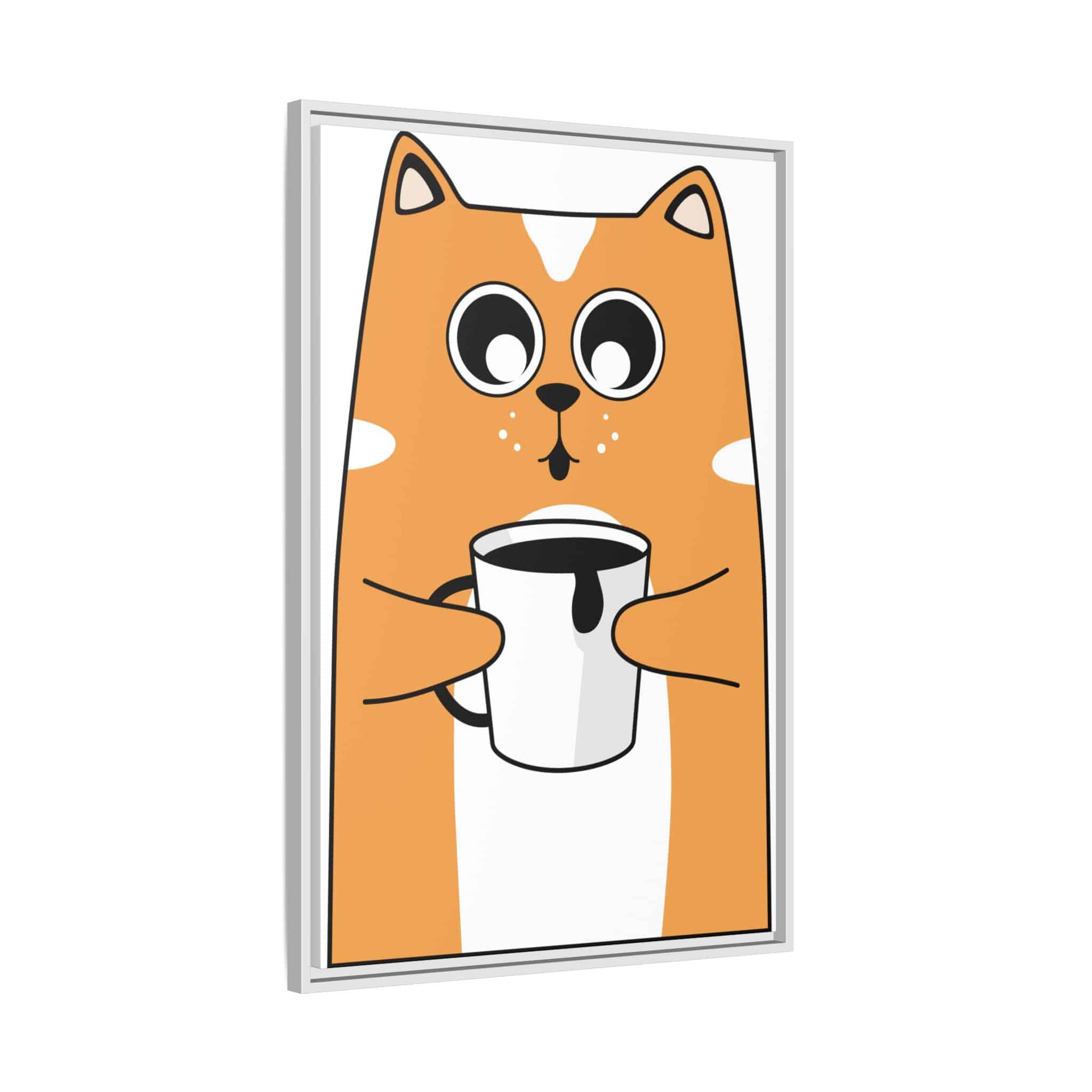 Cute Cat Framed Canvas Art – Whimsical Coffee Decor