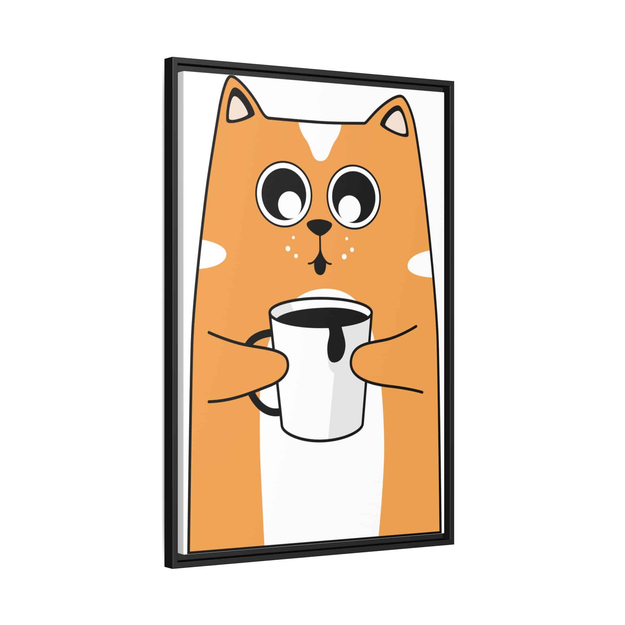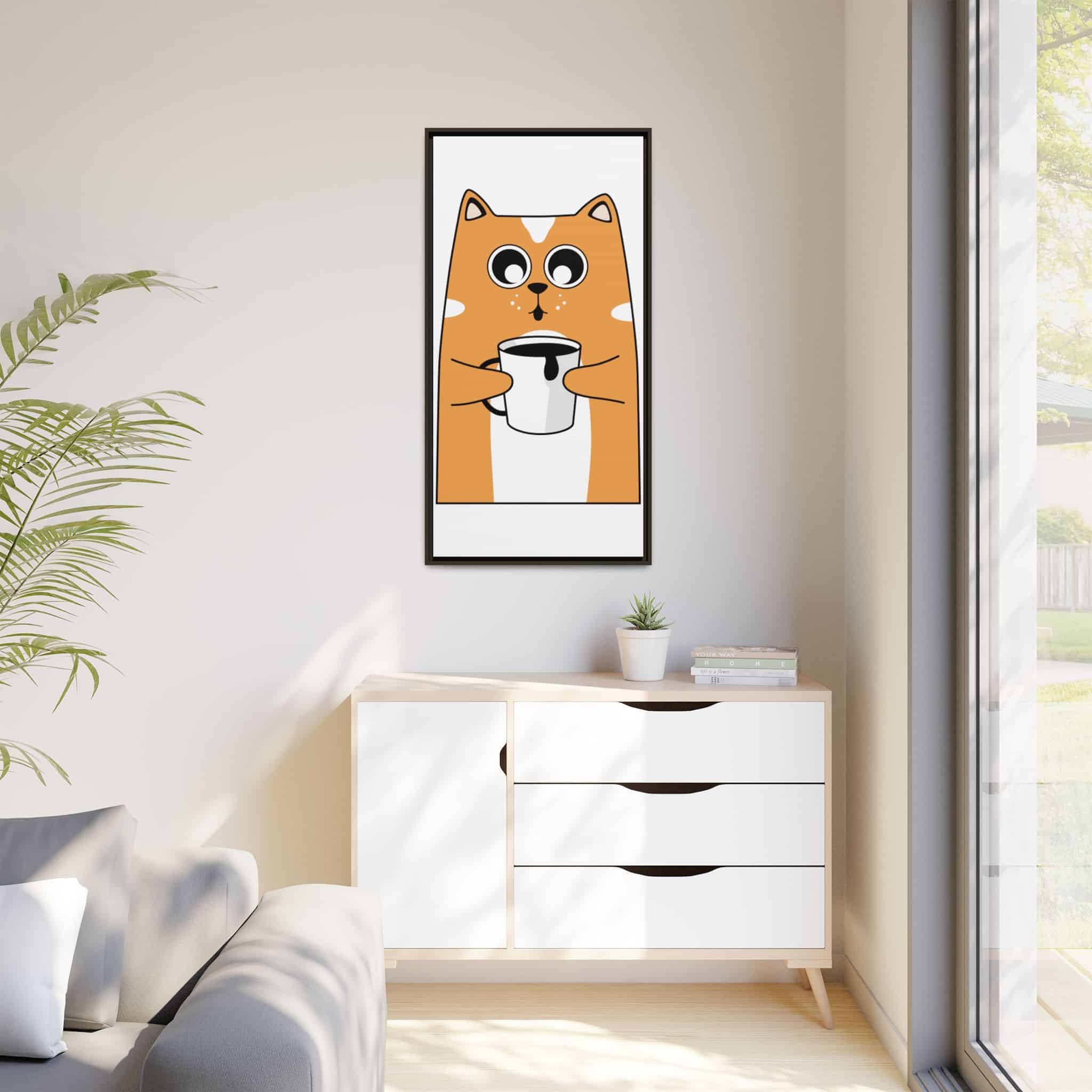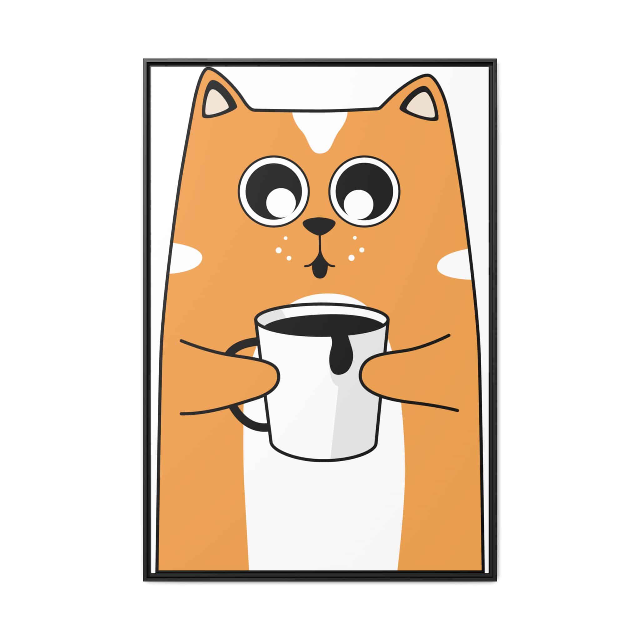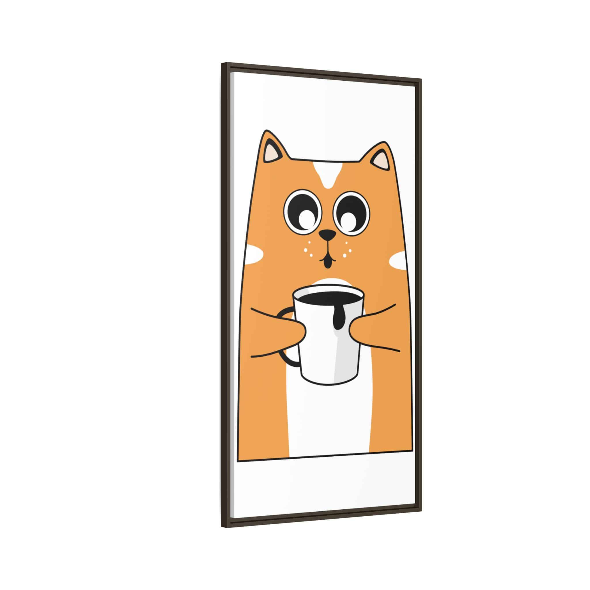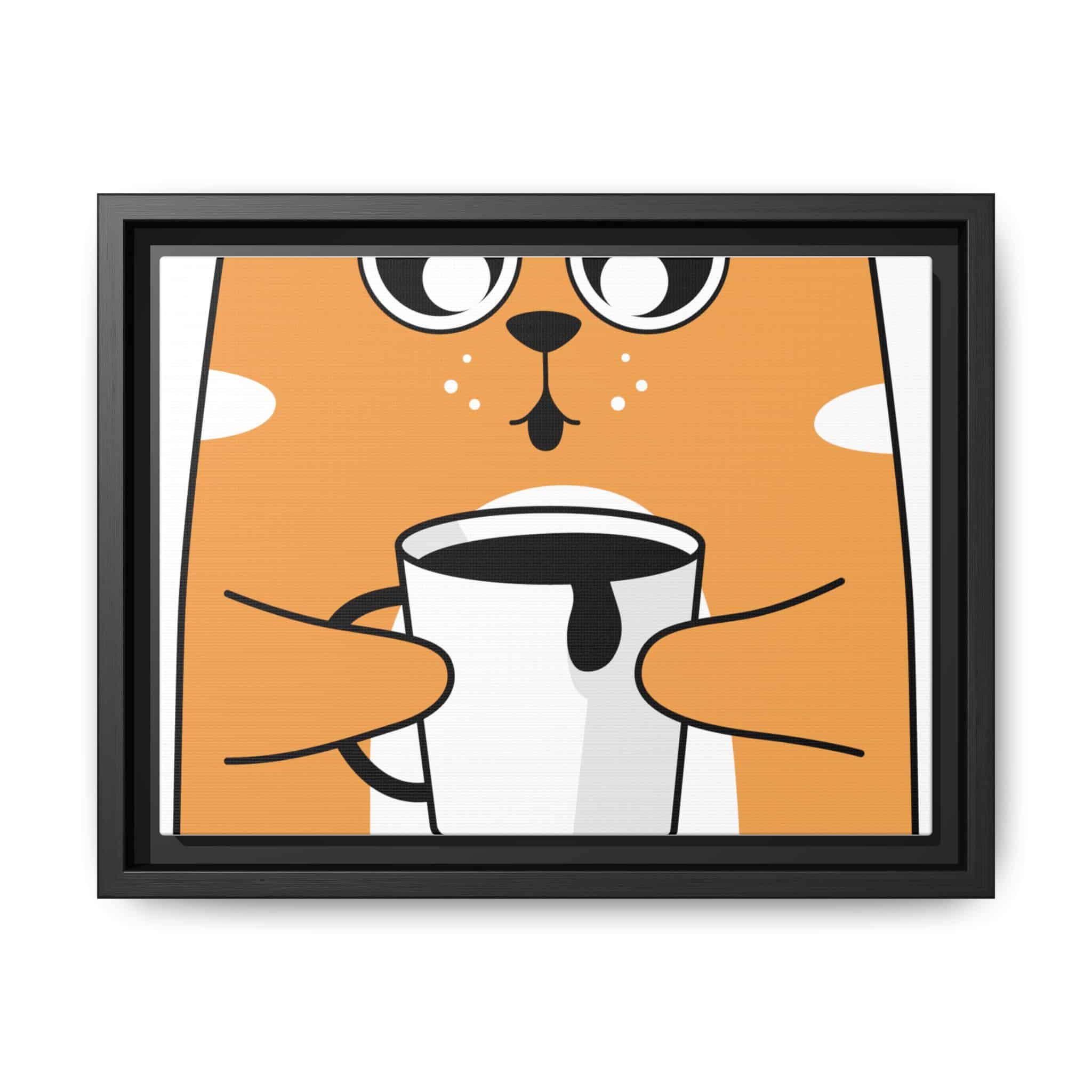 Cute Cat Framed Canvas Art – Whimsical Coffee Decor