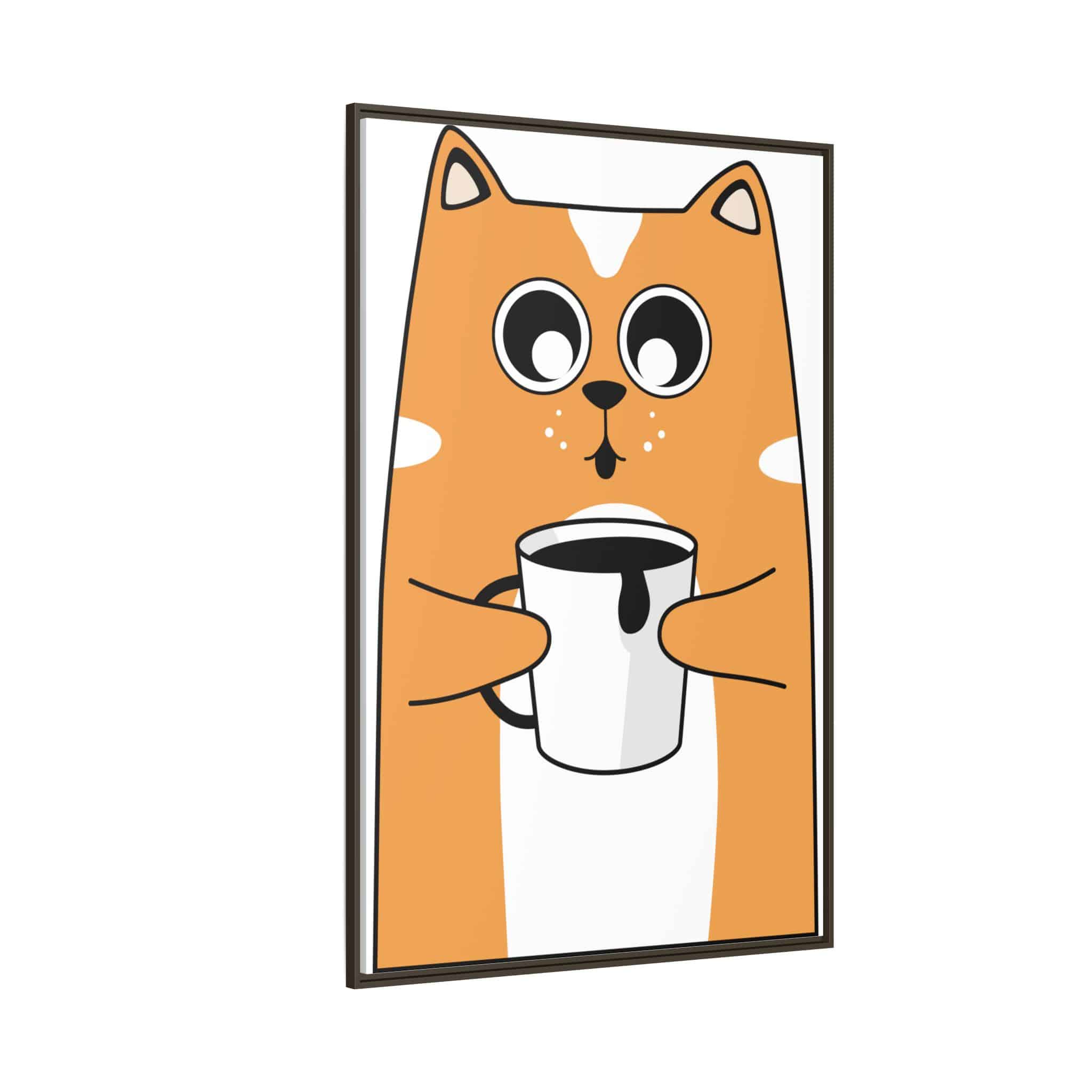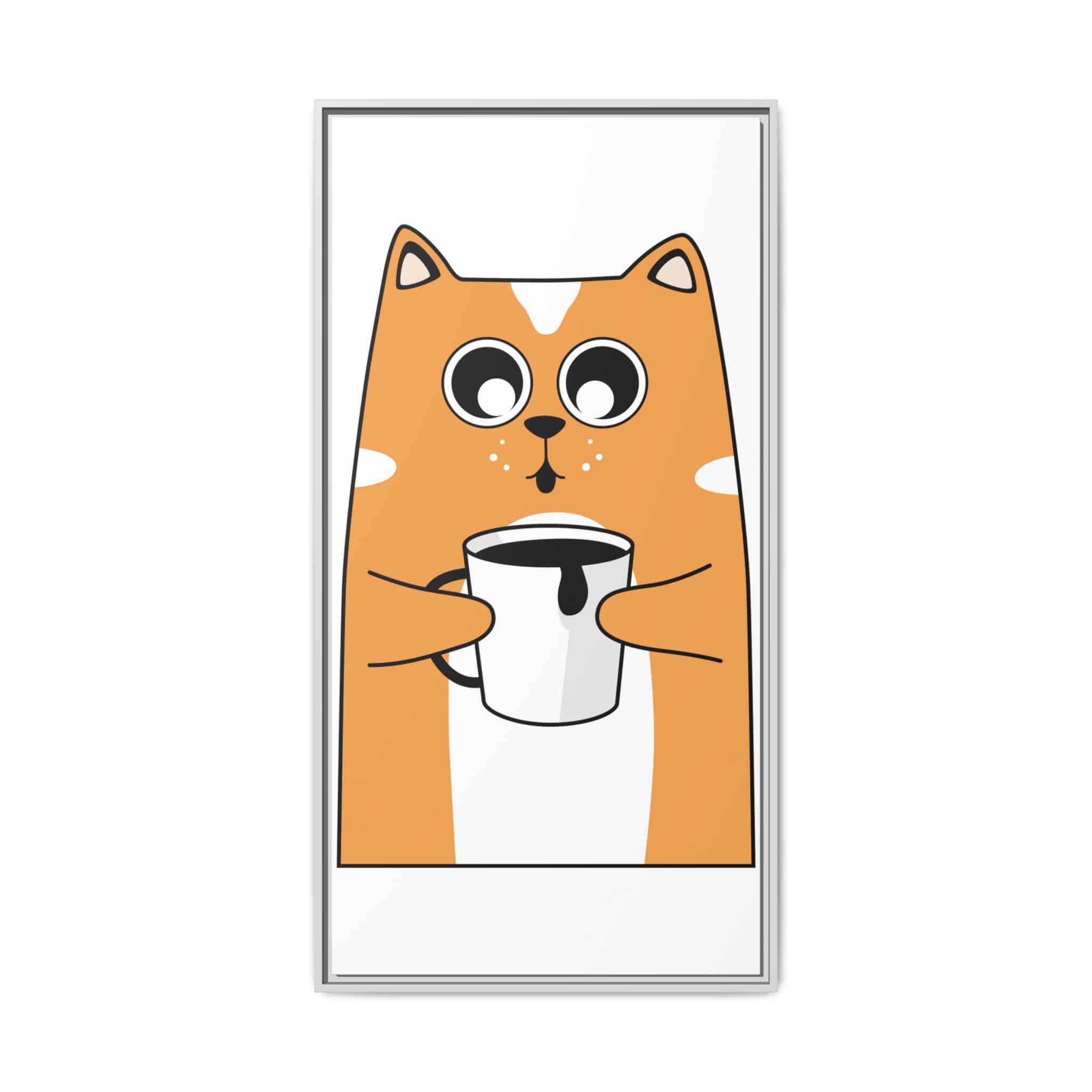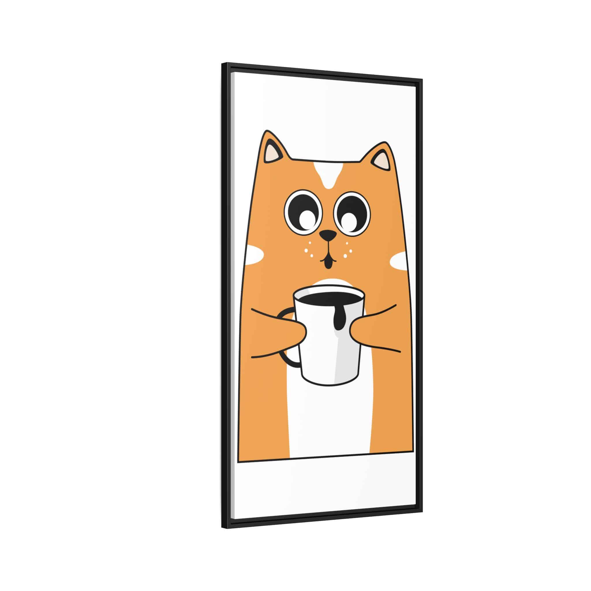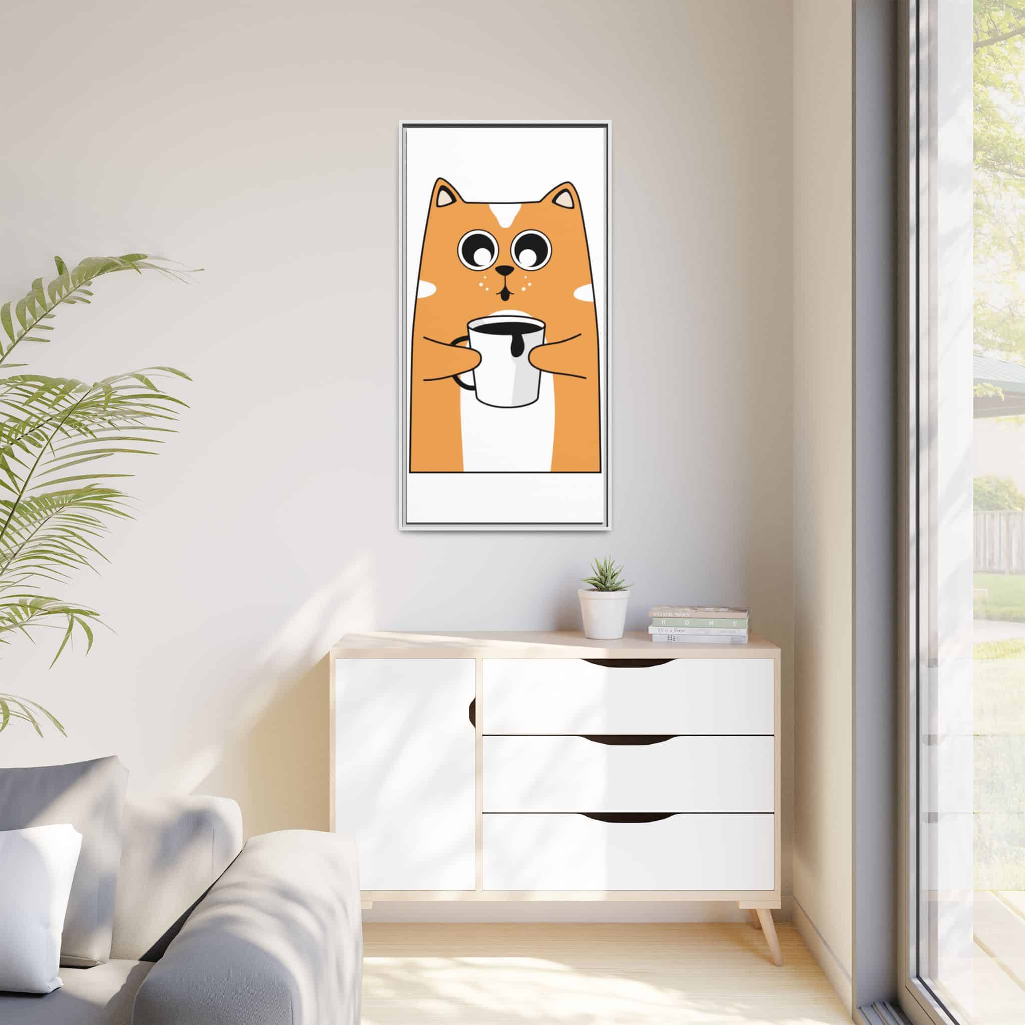 Cute Cat Framed Canvas Art – Whimsical Coffee Decor