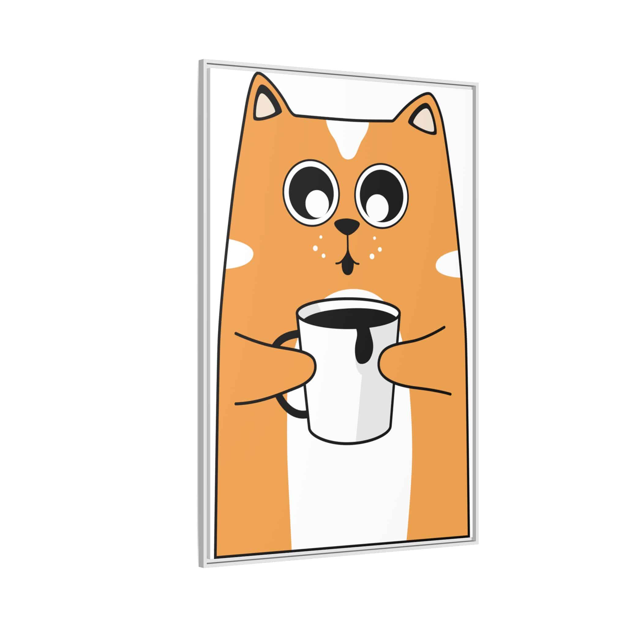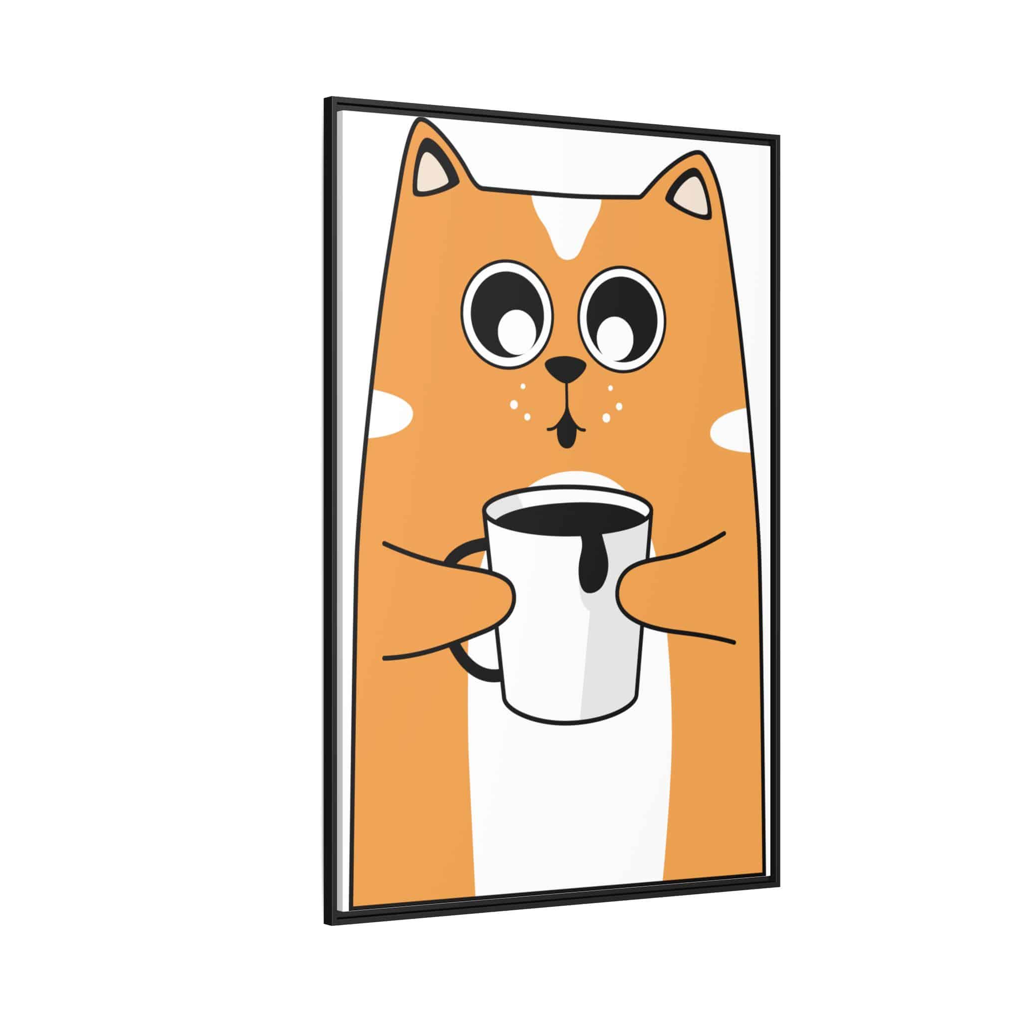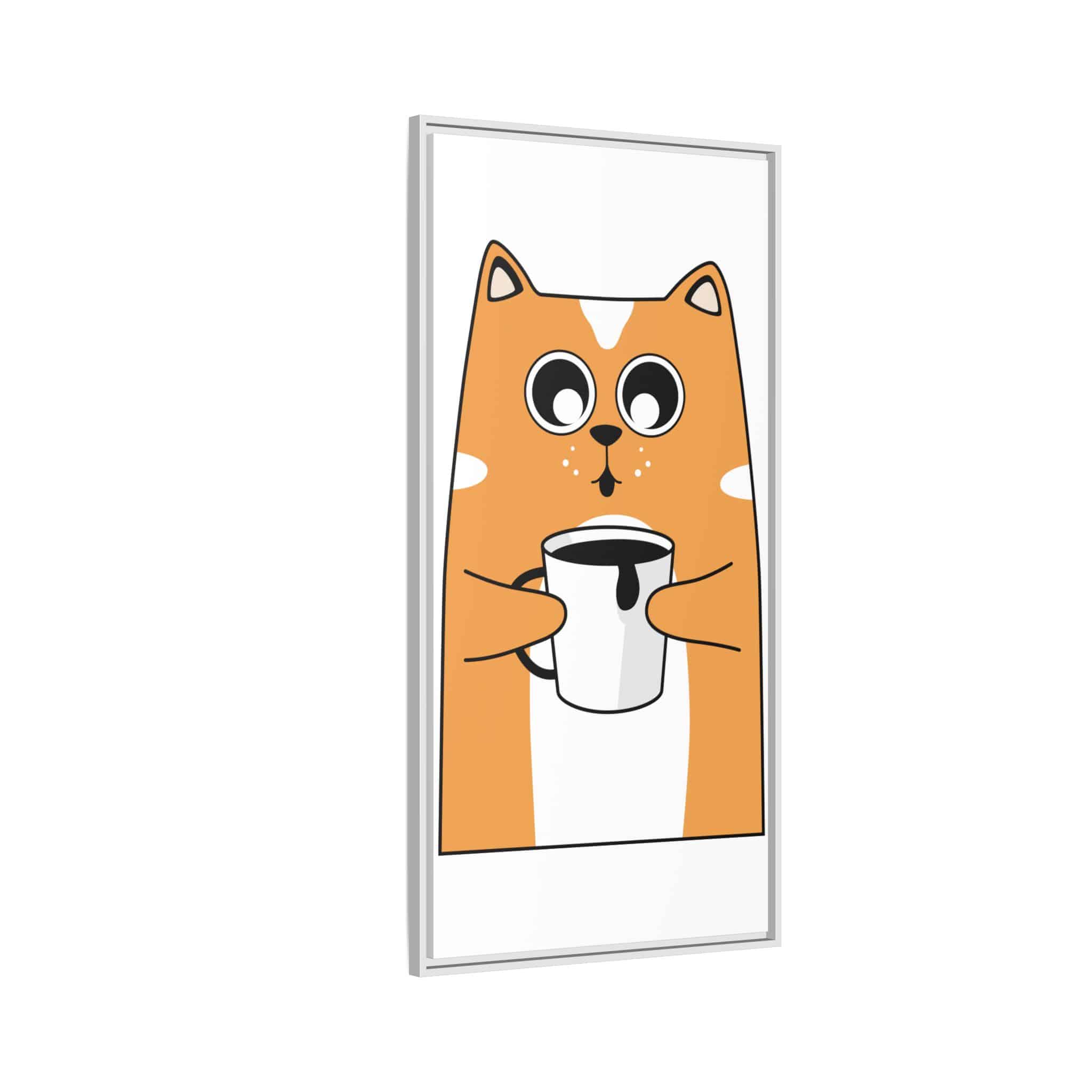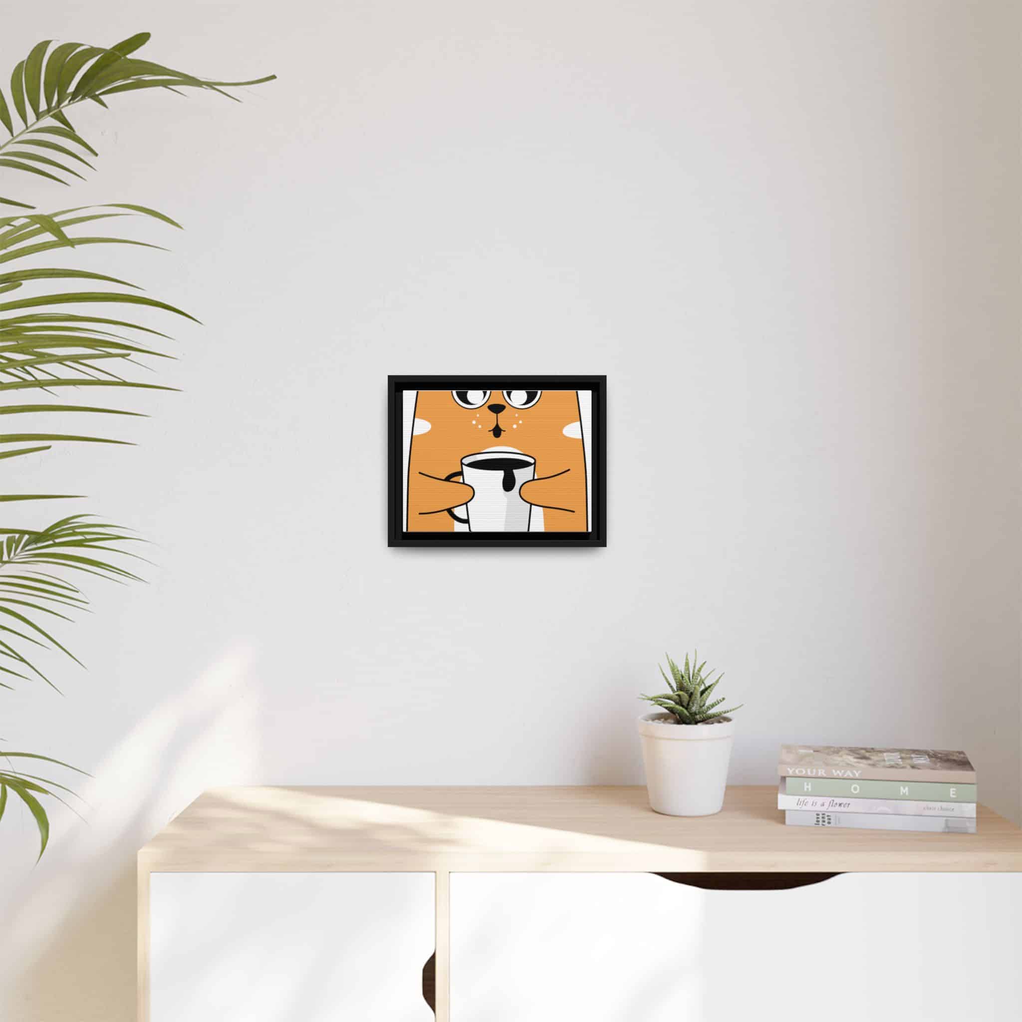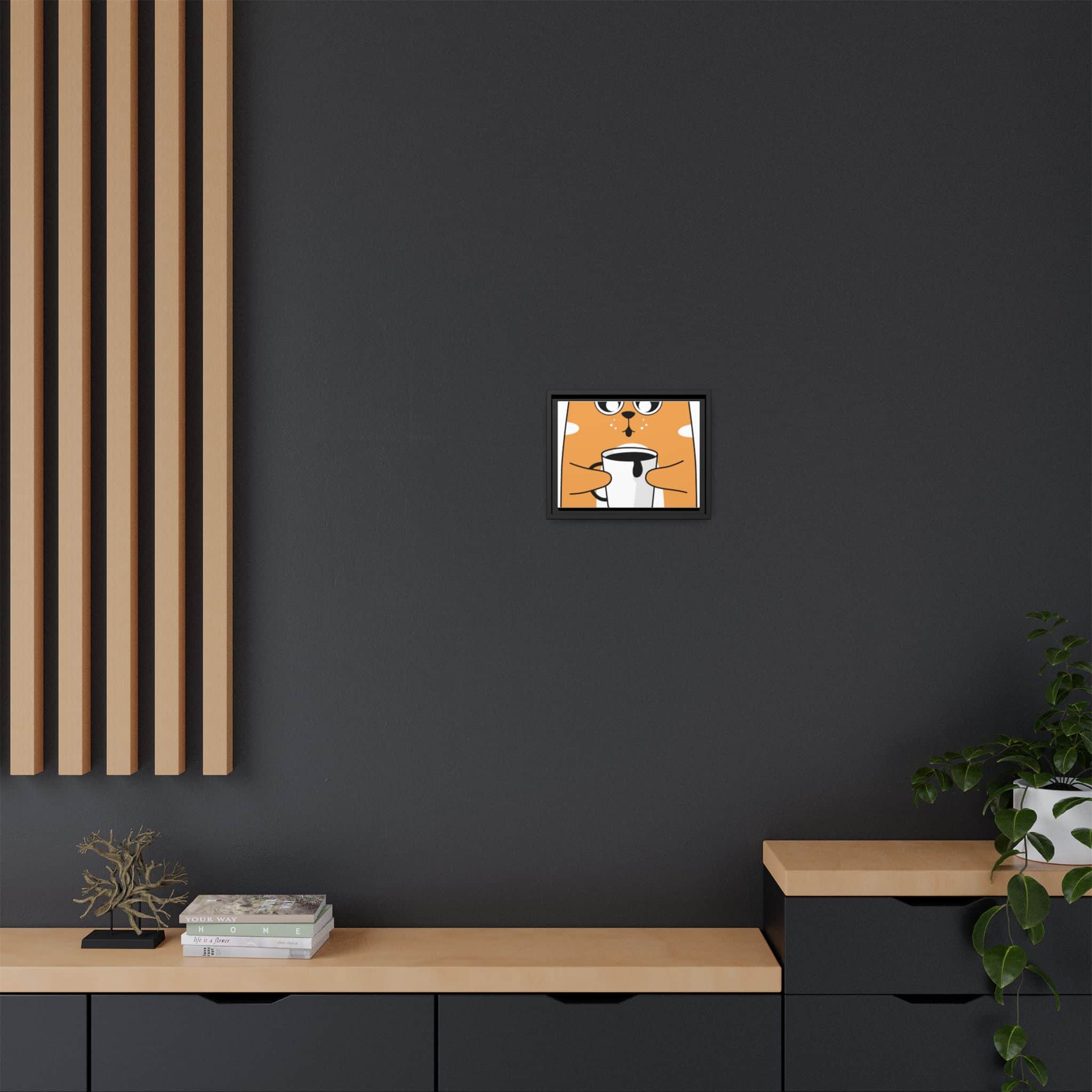 Cute Cat Framed Canvas Art – Whimsical Coffee Decor