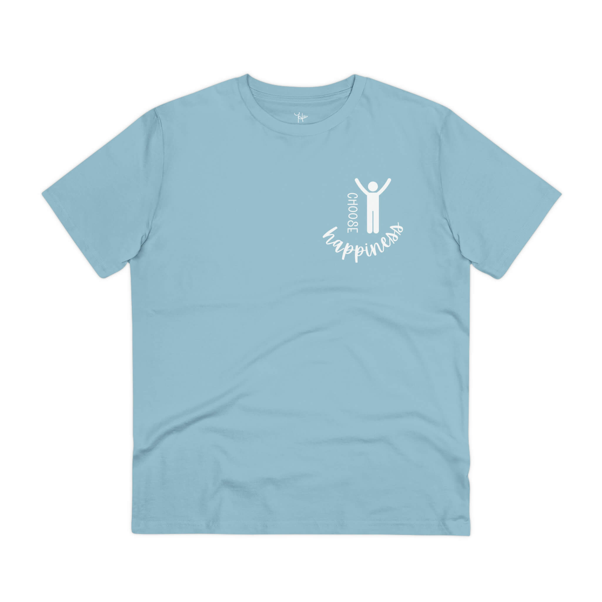 Wear optimism with our choose happiness smiley t-shirt, featuring a playful design where “happiness” creates a smile and “choose,” paired with a stick figure, forms the eyes. It’s a cheerful, organic cotton tee that captures a lifestyle of positivity and intentional living.