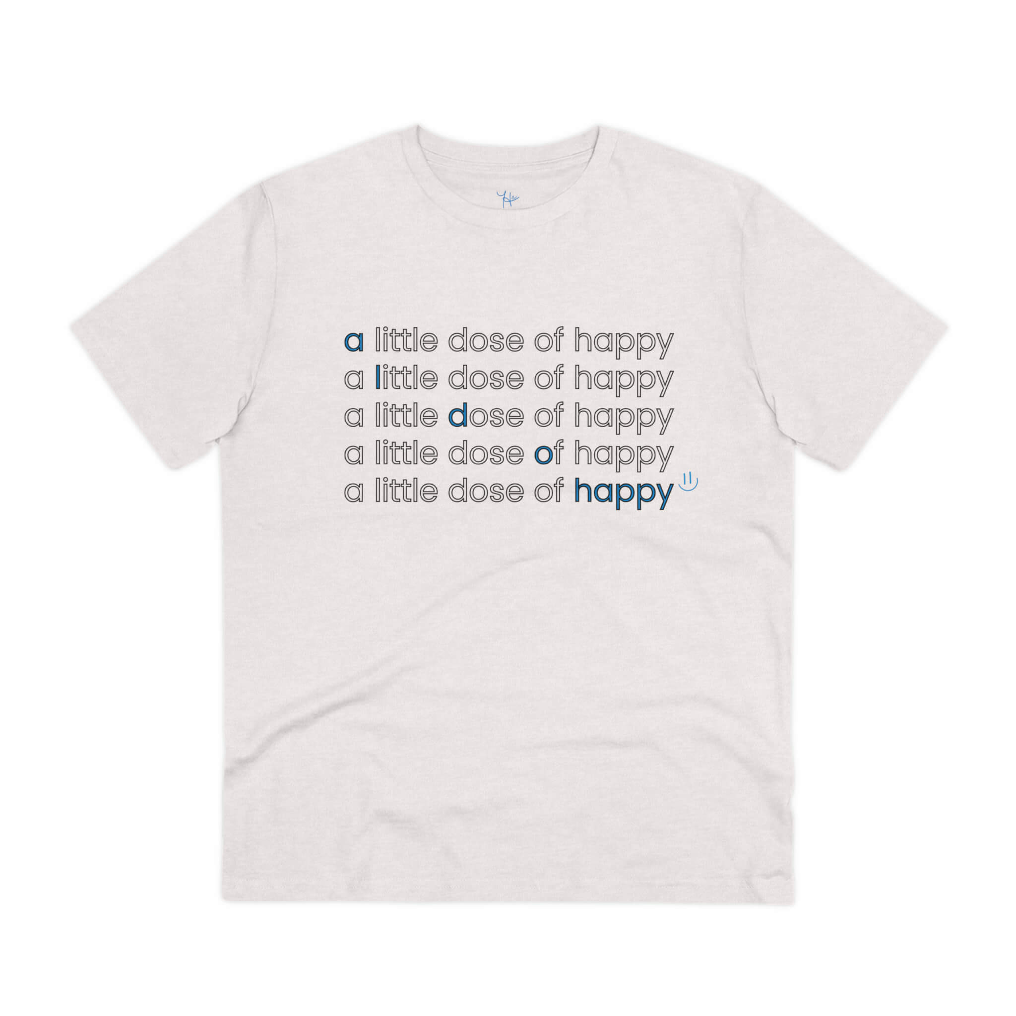 Introducing the classic a little dose of happy tee: where every day’s small victories get their moment in the spotlight. This isn’t just a t-shirt; it’s a testament to the power of consistent, positive actions. It’s our brand name, cascading down your chest five times, each repetition a high-five to the incremental steps you’ve taken on your path to happiness and fulfillment.